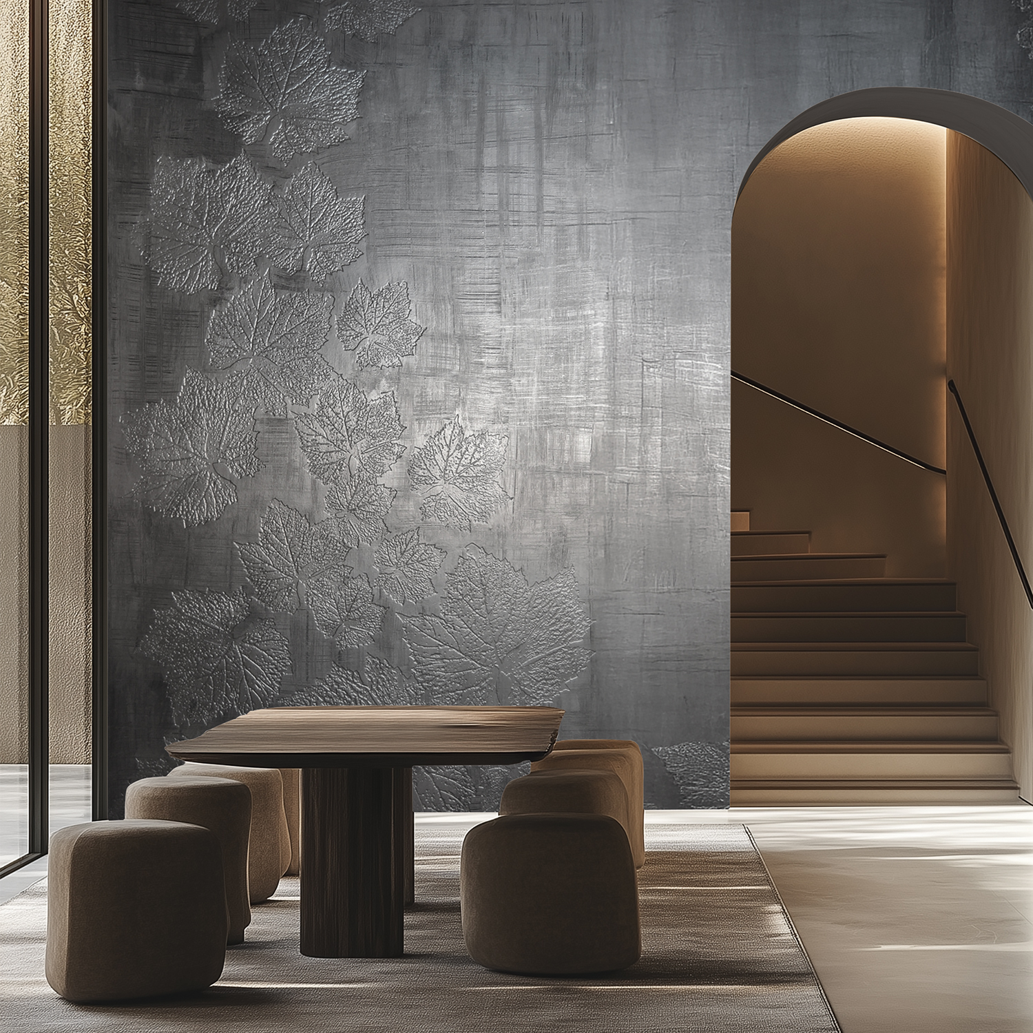 La carta da parati TRI – DIMENSIONAL con texture FOGLIE a rilievo.